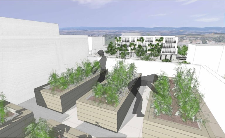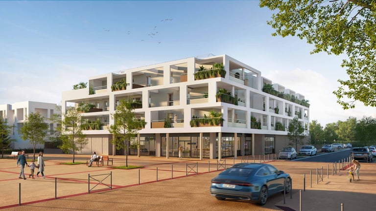 Ensemble de 49 logements répartis sur 2 Immeubles en R+3 autour de la Place des Grands Hommes avec commerces et parkings en rez de chaussée, dans le quartier de la Courondelle.