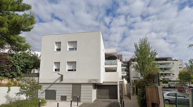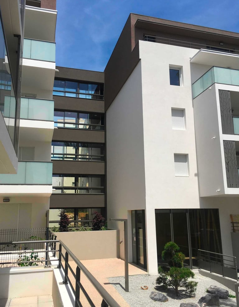 Résidence de 66 logements. Bâtiments du R+2 au R+5 avec parking en rez de chaussée et jardins privatifs, dans le quartier Figuerolles.