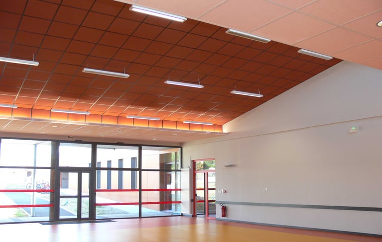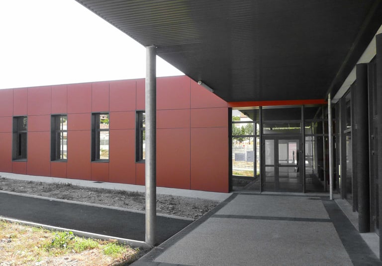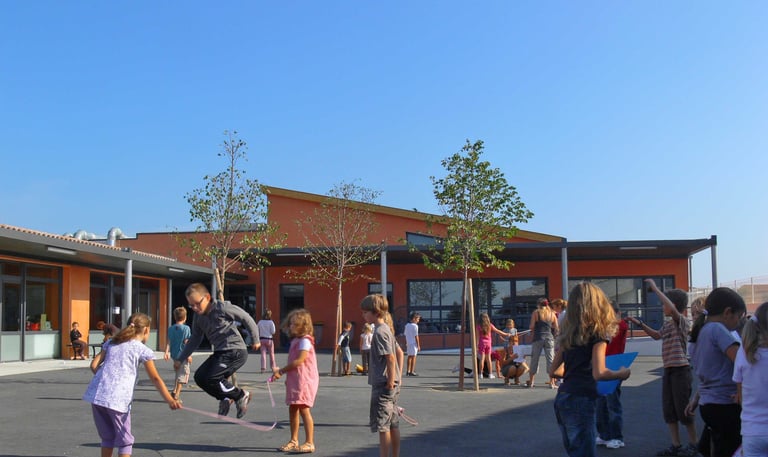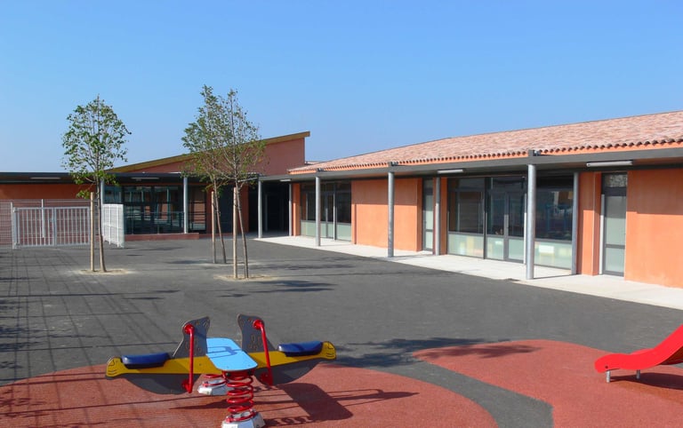 Ecole élémentaire et marternelle de 2000m2 dans le quartier de la Bornière, salle d'expression, bibliothèque et restaurant.